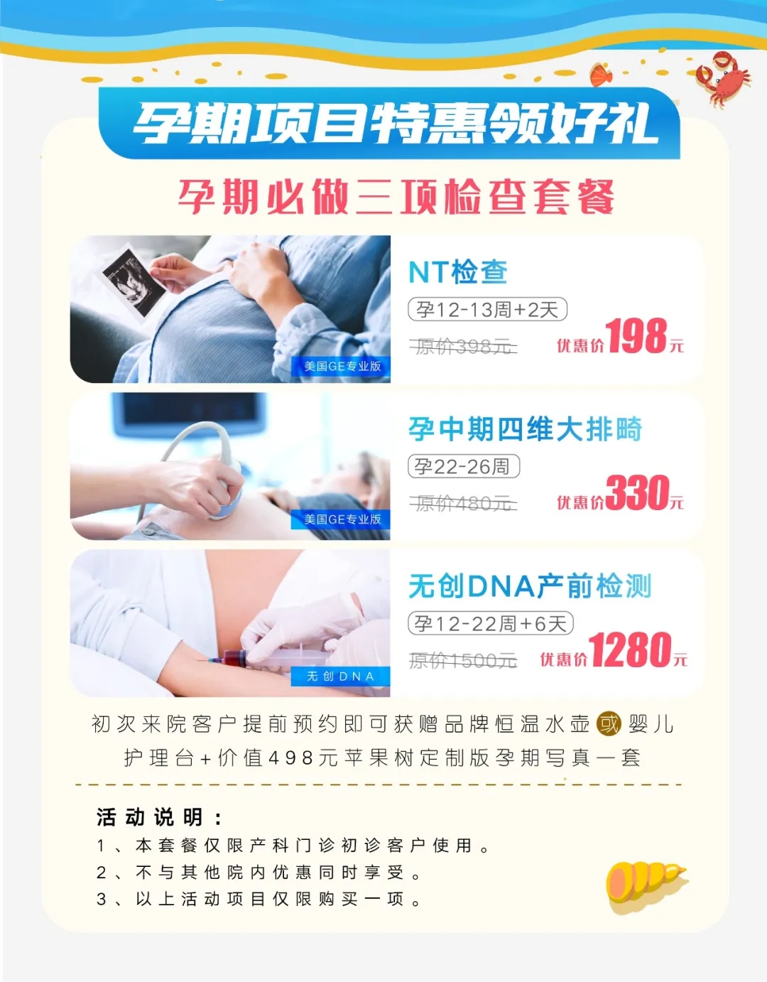 ✔孕期重要产检项目享特惠