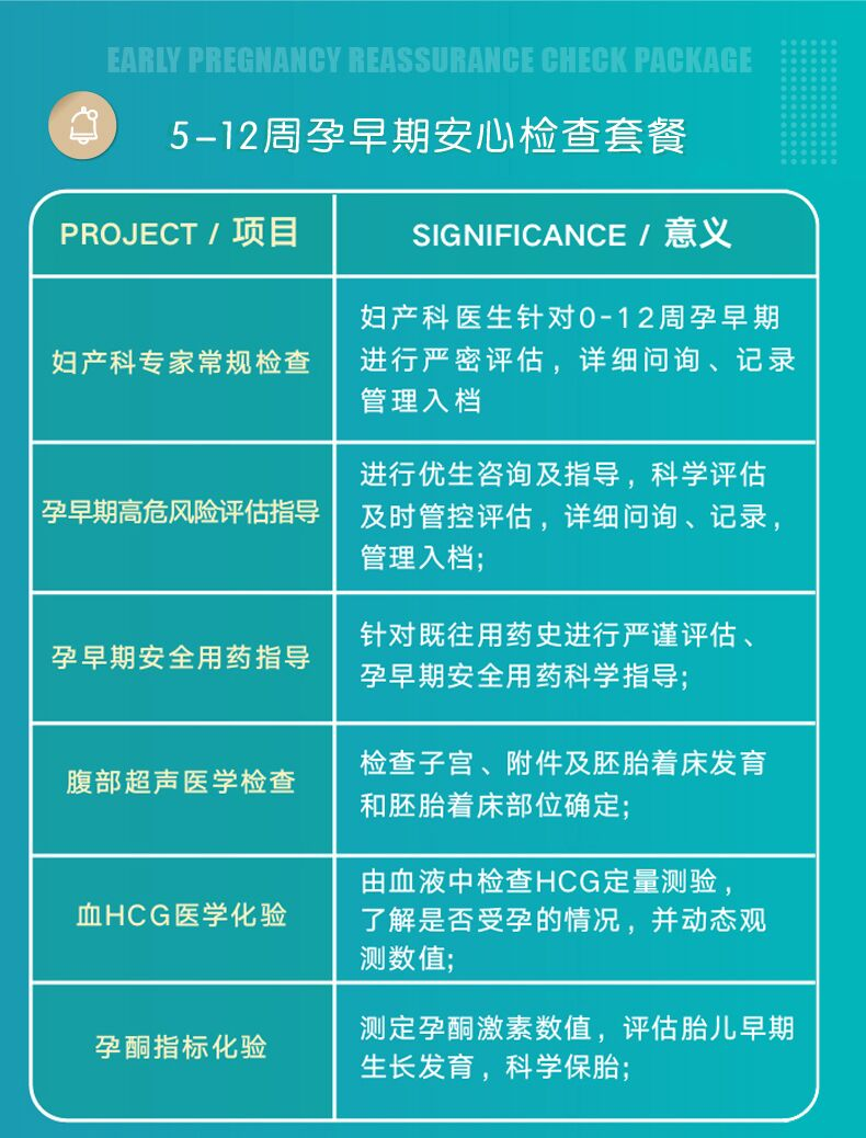 美琳达提供孕早期评估,开设孕早期门诊,制定了四项评估要素,涉及高危风险评估、排除异常妊娠、孕期用药及科学保胎指导。经验丰富的产科医生将从医疗、饮食及孕早期身体等全方面情况为孕妈做好评估。现在89元即可预订美琳达孕早期检查套餐,套餐涵盖孕早期血HCG、孕酮、B超检查等